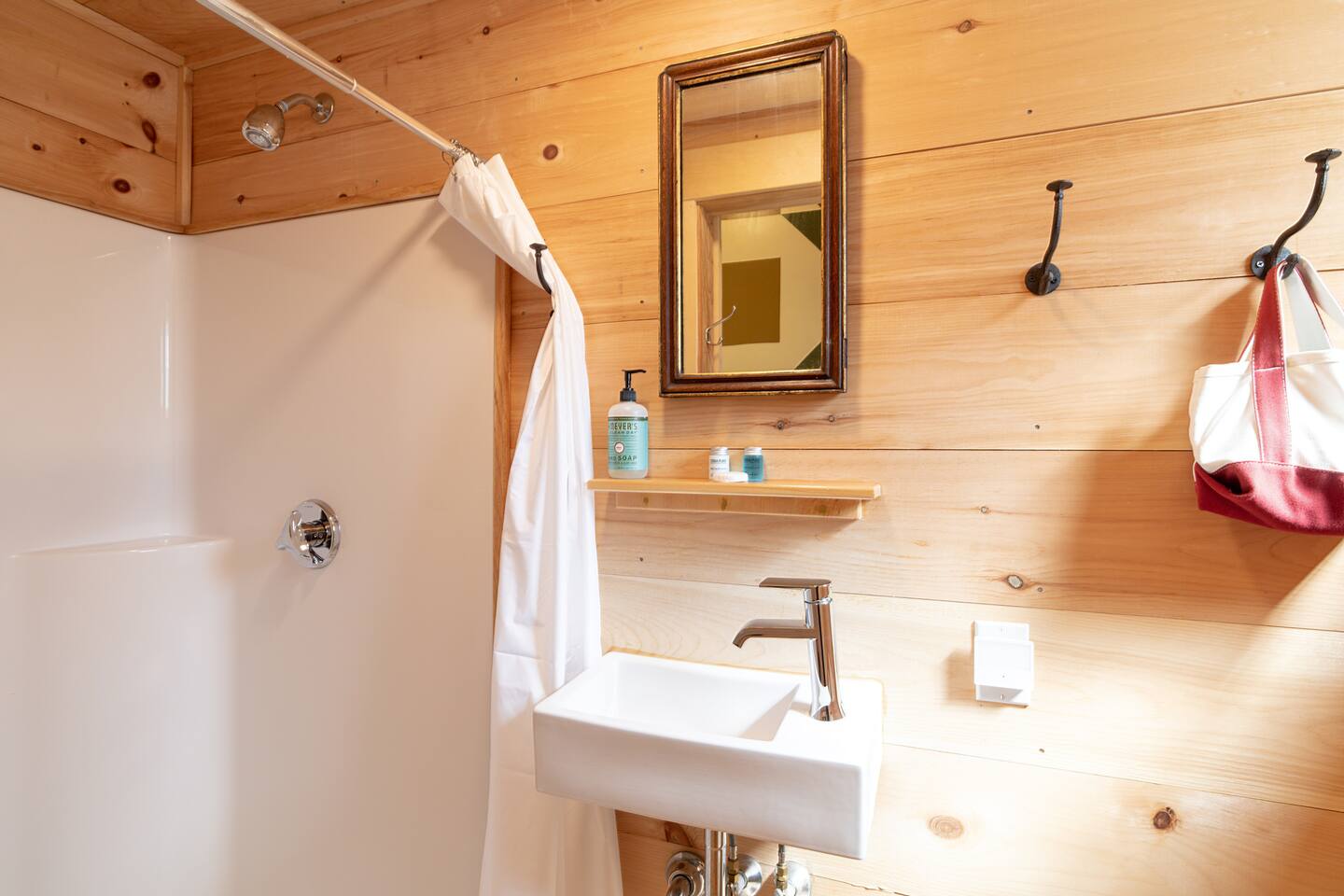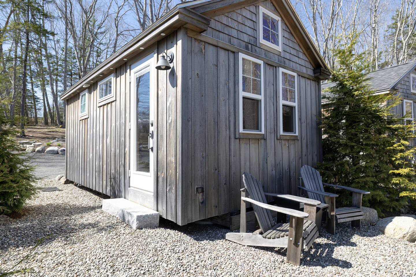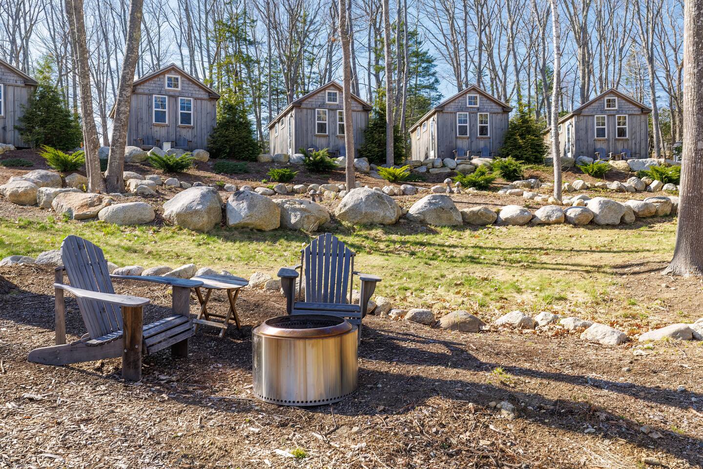Guests have private access to Cabin 3 and its outdoor seating area with Adirondack chairs, ideal for relaxing among the cedar trees. Shared Amenities • Firepit area with two Solo Stoves — gather with others or enjoy a quiet fireside moment. • Wood-fired cedar sauna (prepared by us; $25 suggested donation). • Sandy Point Beach just 0.5 miles away, perfect for swimming, picnics, or coastal walks. Designed for comfort and convenience, Cabin 3 makes it easy to unwind on-site or explore the natural beauty of Maine.
